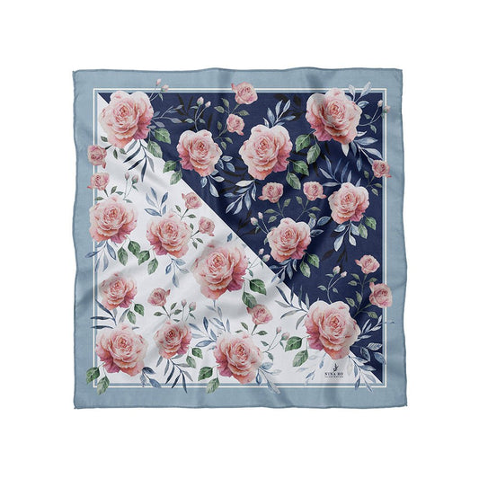 - 藍葉玫瑰雙面真絲絲巾 - 銀河深藍 - 雙面設計可單色或雙色搭配,深色系百搭,日常通勤必備