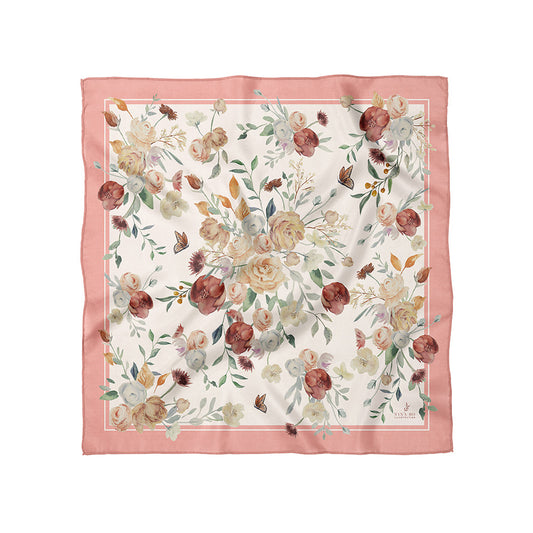 花束與蝴蝶雙面真絲絲巾-珊瑚粉(粉橘)