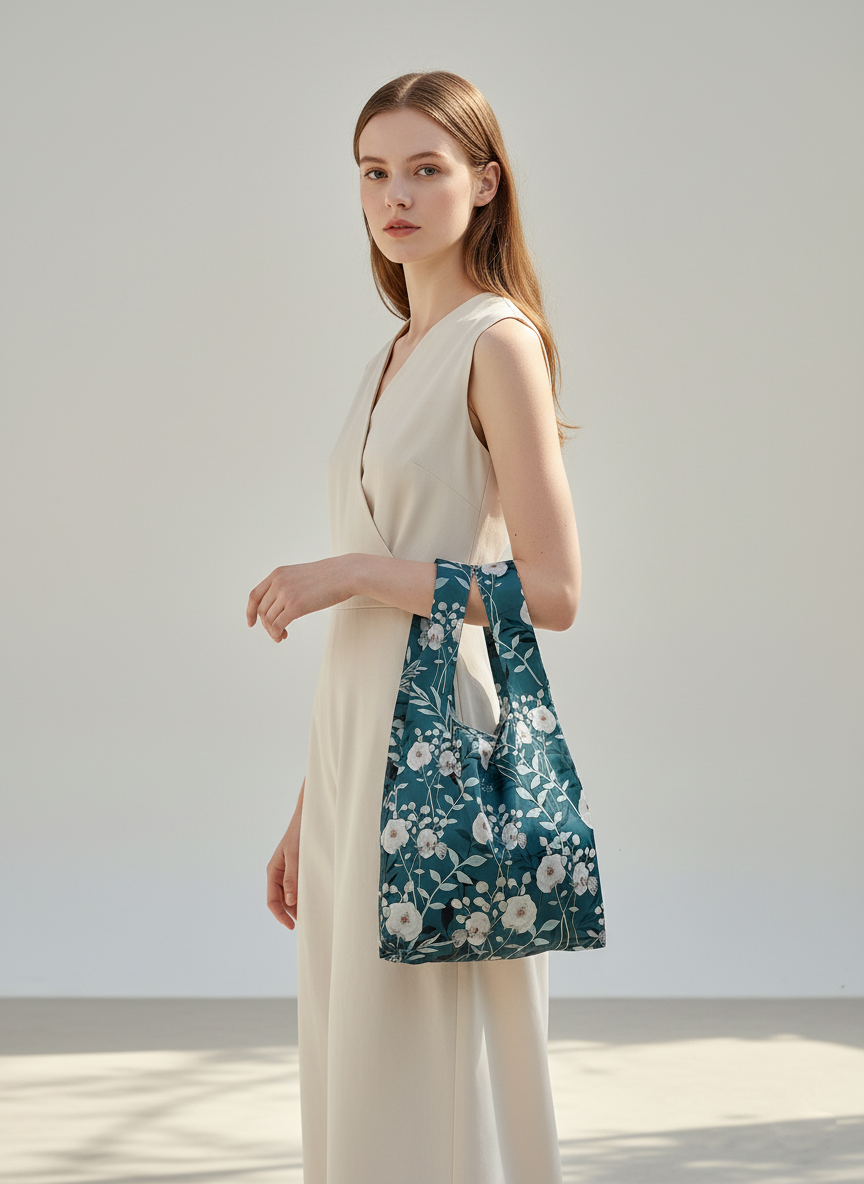 Daffodil and Robin Shopping Bag-S-Dark Blue Green