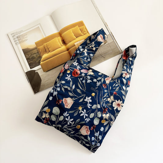 フラワーパーティーショッピングバッグ-S-ダークブルー