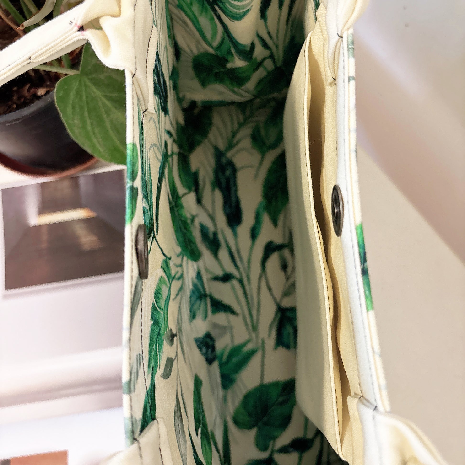 硬挺帆布材質,讓包型保持俐落且耐用;袋體採 磁扣設計,開闔方便又安全。
