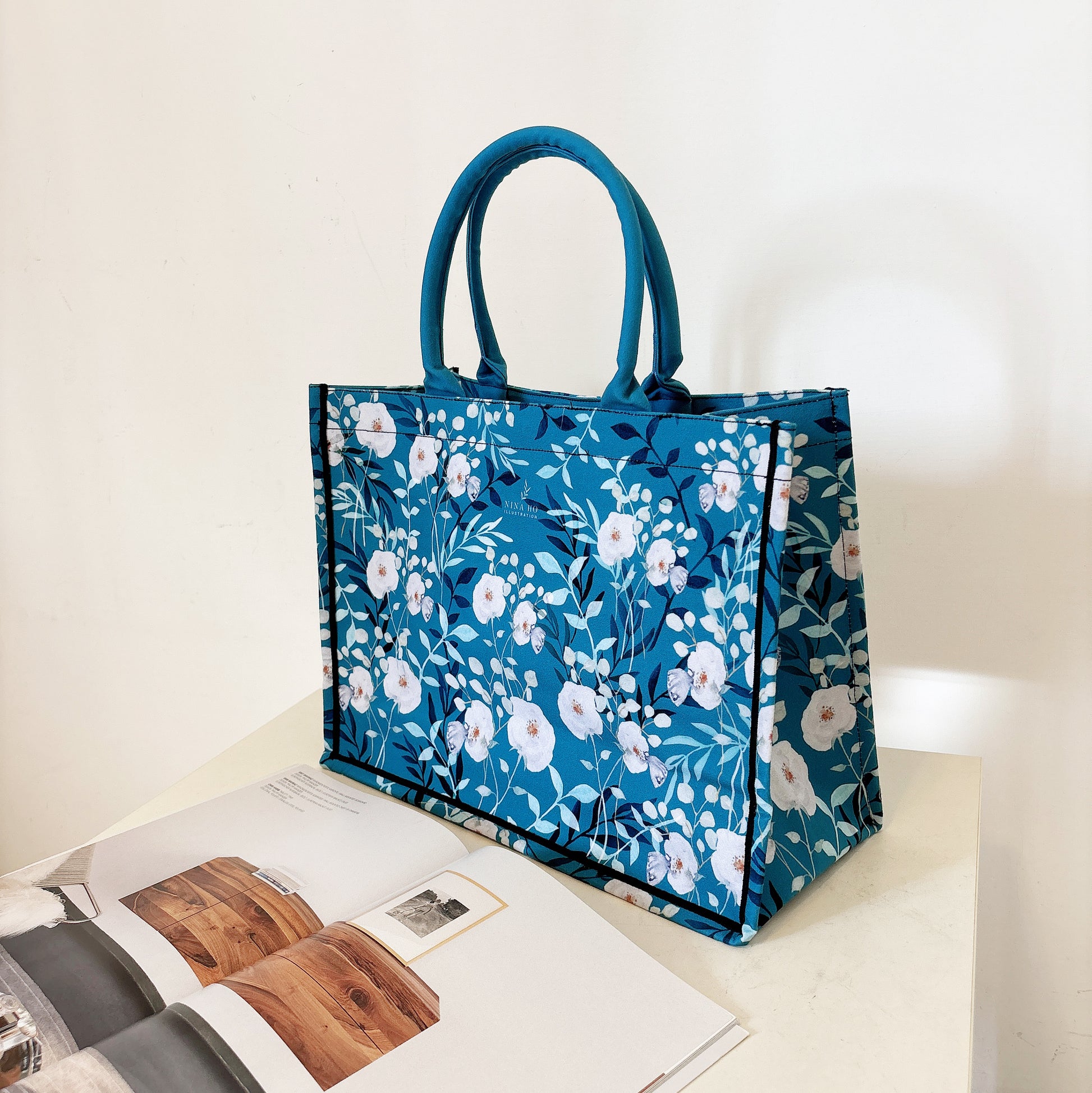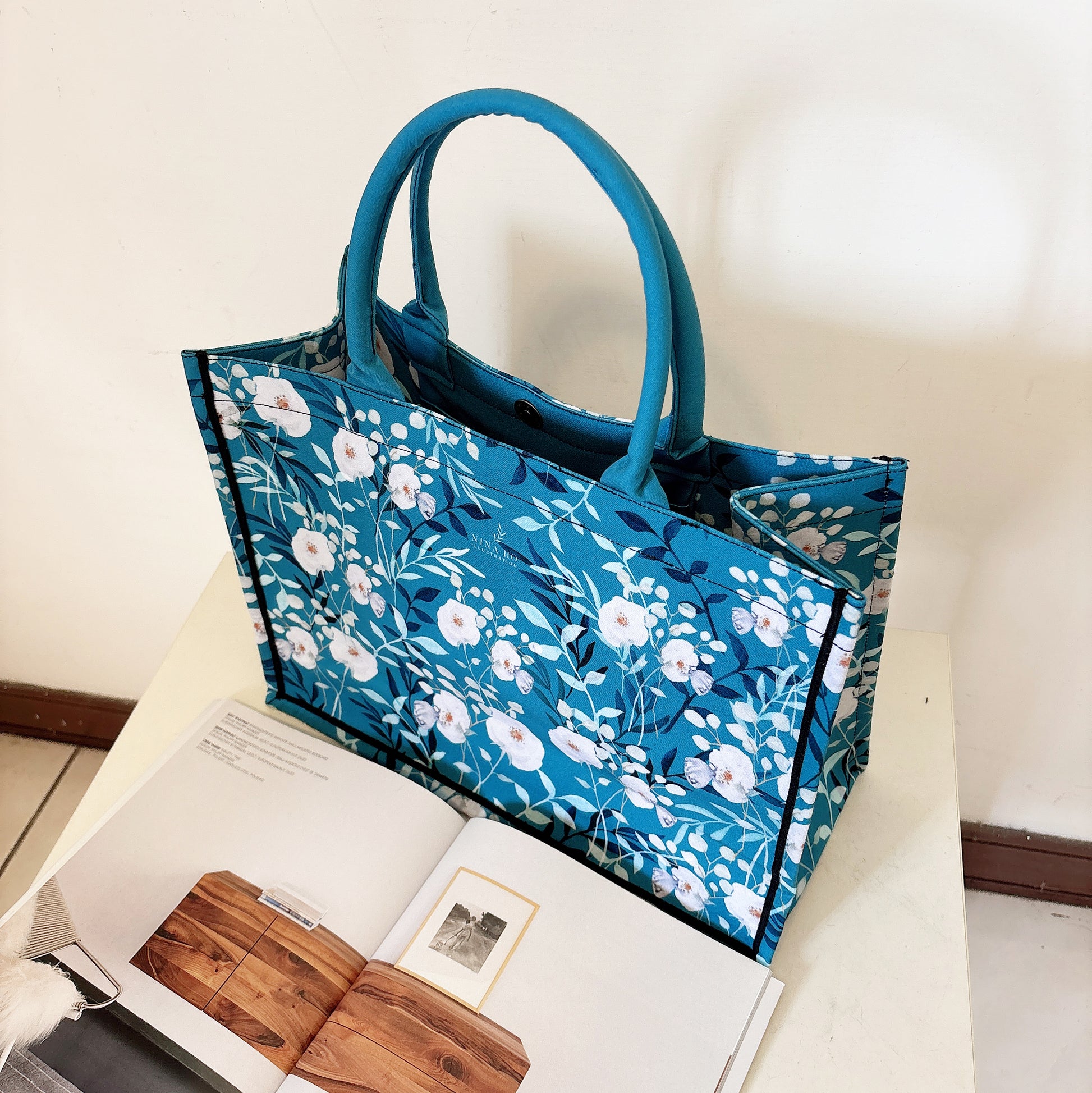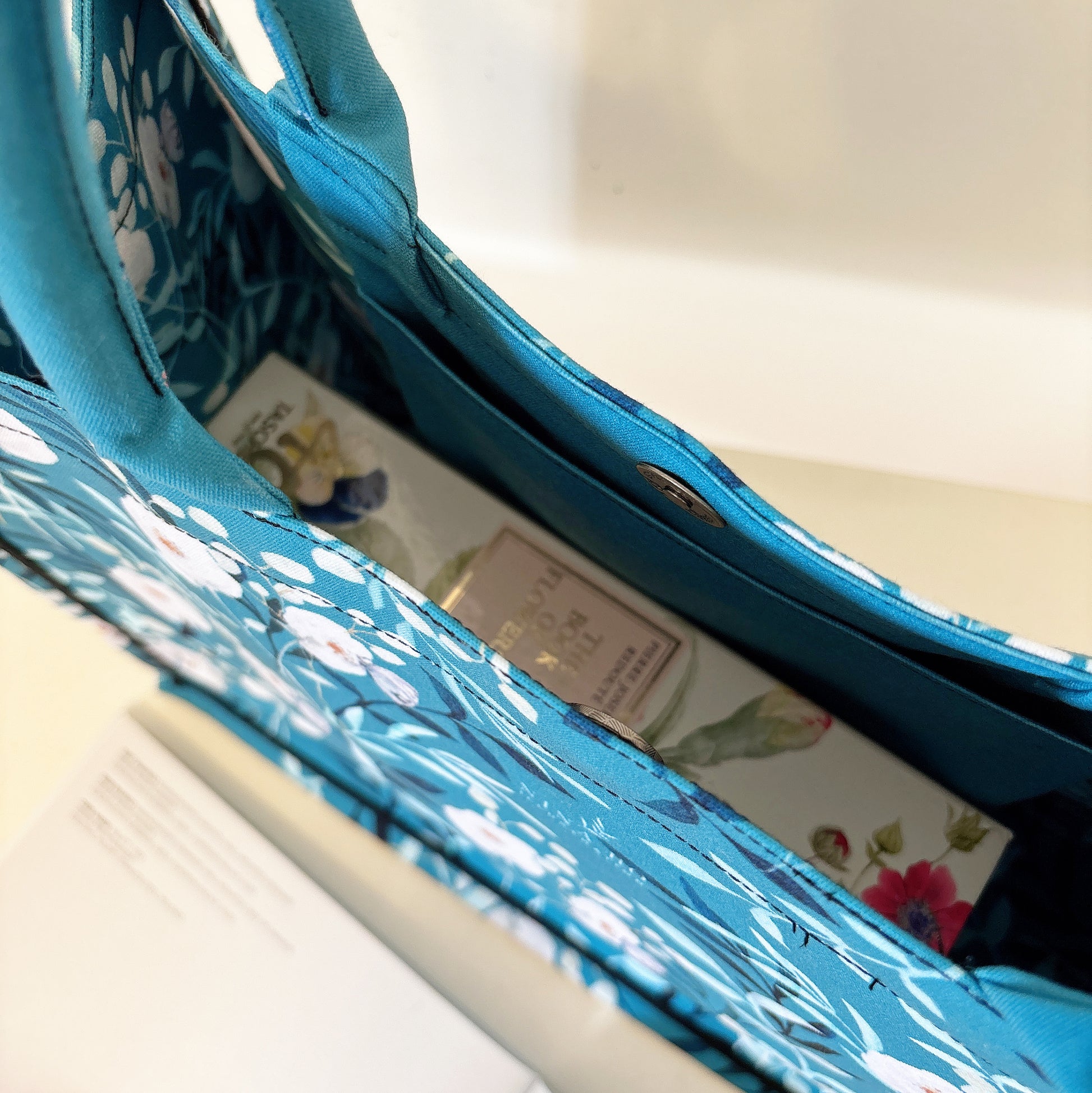 茶花與蝴蝶 帆布手提大方包-湖水藍綠(新品)