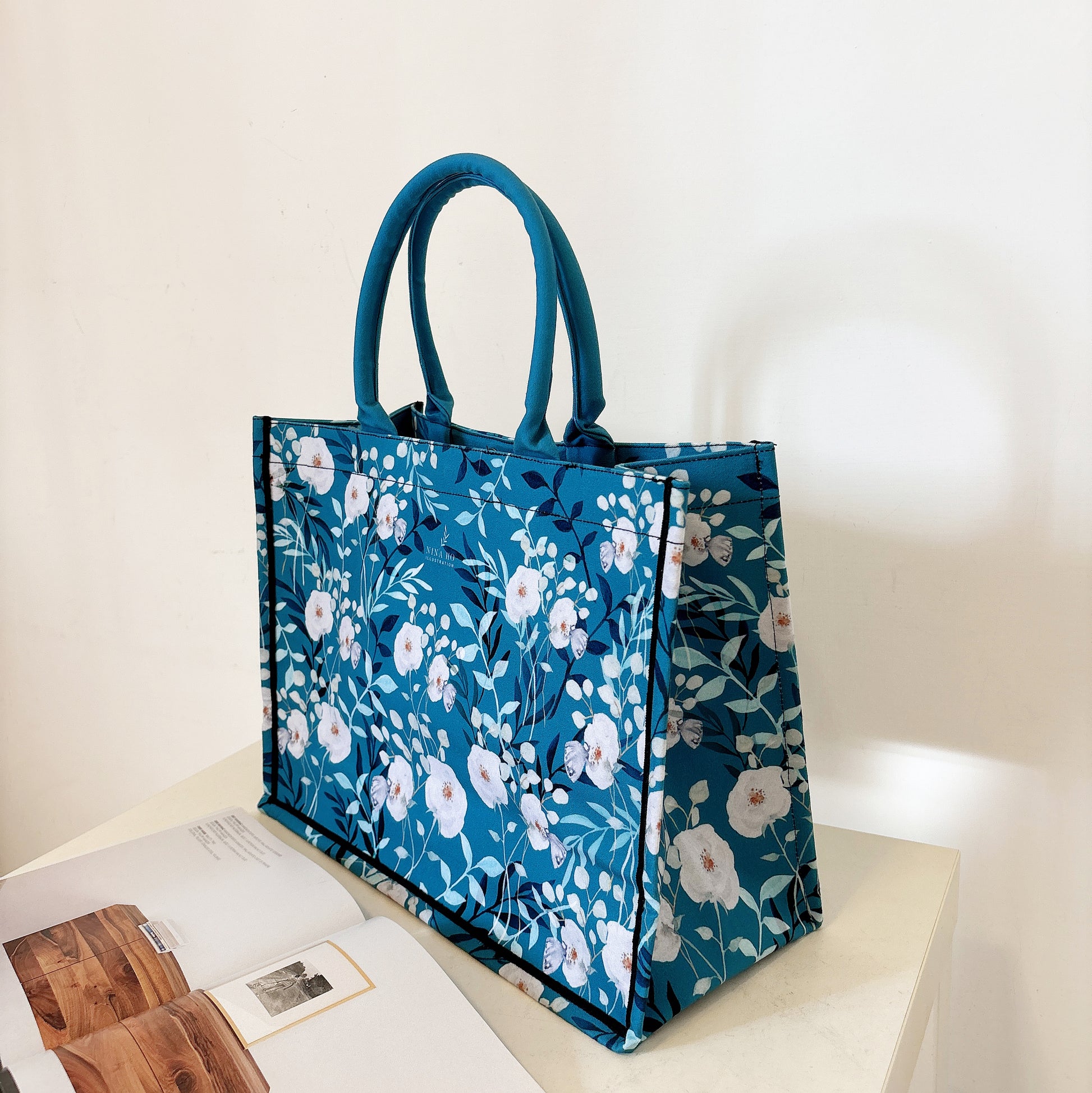 茶花與蝴蝶 帆布手提大方包-湖水藍綠